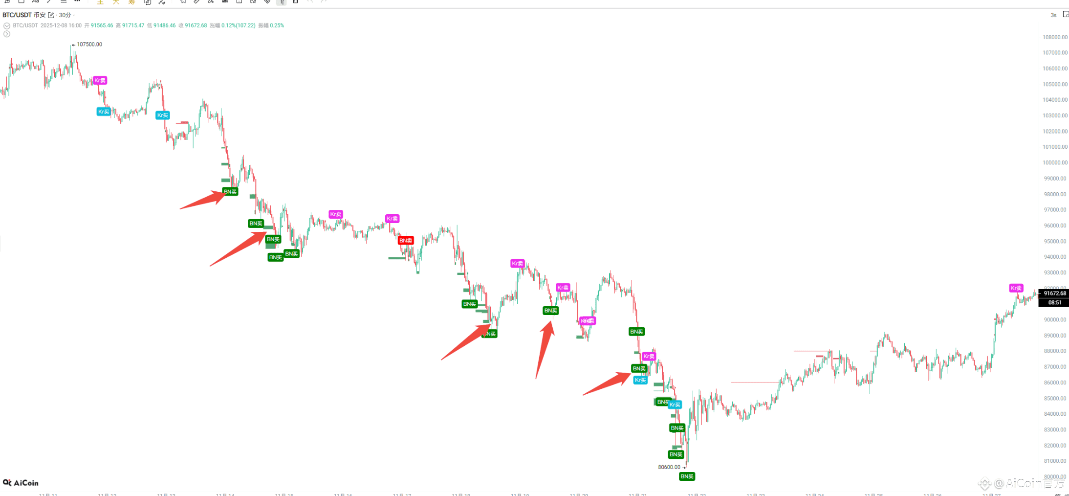 散户呢,又爱用限价交易(毕竟手续费低),所以币安上的限价单那叫一个密密麻麻 —— 你看这图里的 BN 买信号,全是币安那边超 1000 万美元的限价单。