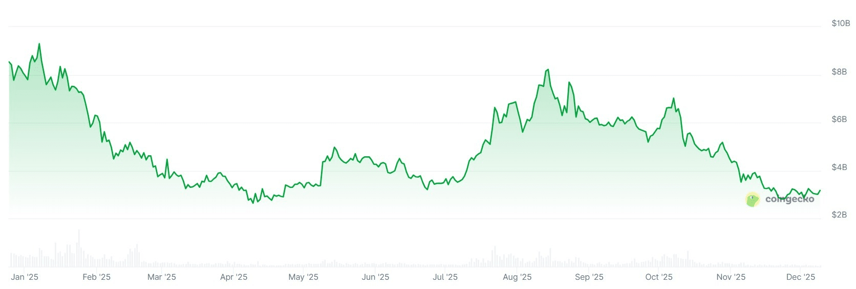 分析平台显示,NFT市场的总市值现在约为31亿美元,比2025年1月下降了66%,当时达到了92亿美元。