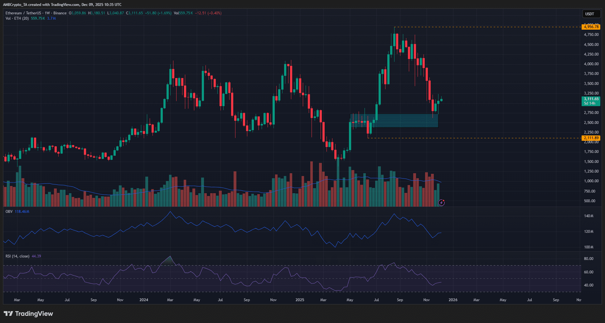以太坊在链上和图表上继续显示出混合信号。倾向略微看涨,但如果购买压力没有改善,交易者应准备好可能跌破3000美元。
