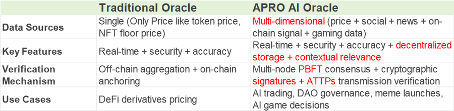 传统预言机在AI时代显得不足。APRO AI预言机通过四个维度实现范式转变: