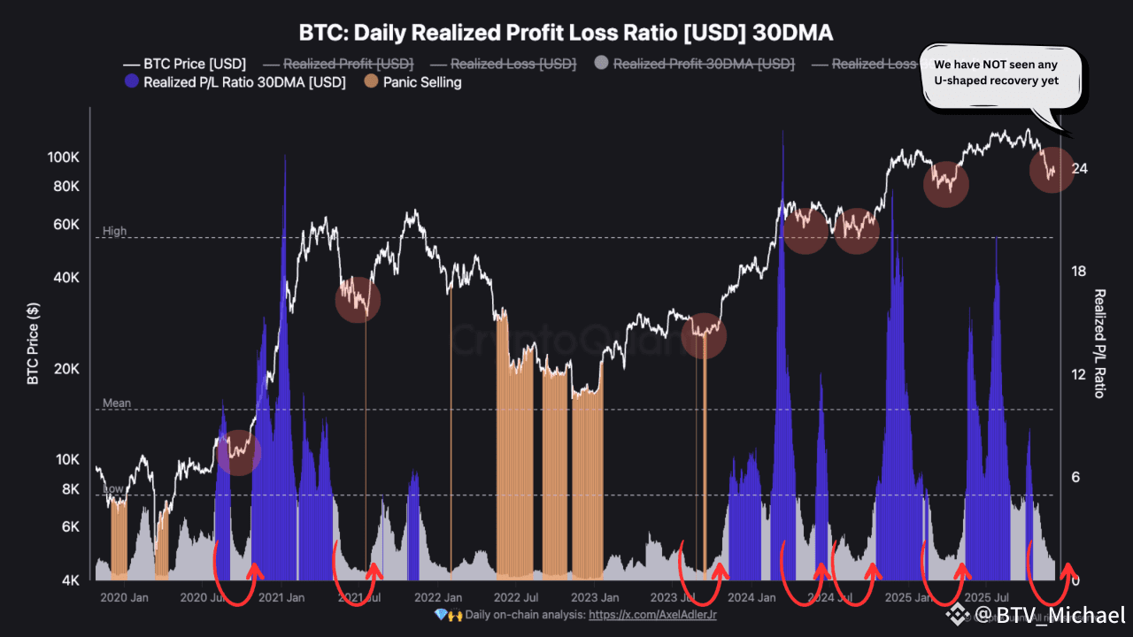 比特币现在的 30 日盈亏比,看起来就像一条“地上爬的蛇”,贴地到不行,半点上弯的意思都没有,说白了就是:别想反转了,市场还在底部磨你心态。以前每一轮真反弹前,蓝色盈利区间都会来个标准 U 型上翘,像发动机预热、准备起飞;结果这轮呢?引擎连启动声都没响一声,像提前睡着了。但也别慌,把这当成“要崩了”就太戏剧化了。链上根本没看到恐慌砸盘,该割的也早割完了,现在更像市场在慢慢煲汤、用时间换结构。最扎心的是:底部横盘的时间,大概率会比大多数人的耐心更长,你等烦了,它还没想动。真正关键只有一件事:30 日均线什么时候开始上弯。那一下,就是复苏的启动键;没上弯之前,统统算筑底,不叫反转。币圈的传统艺能就是这样:越是无聊、越是安静的时候,反而越容易给长线资金悄悄埋伏。所以现在这段“贴地飞行期”,可能是最闷的底,也是最值钱的底。