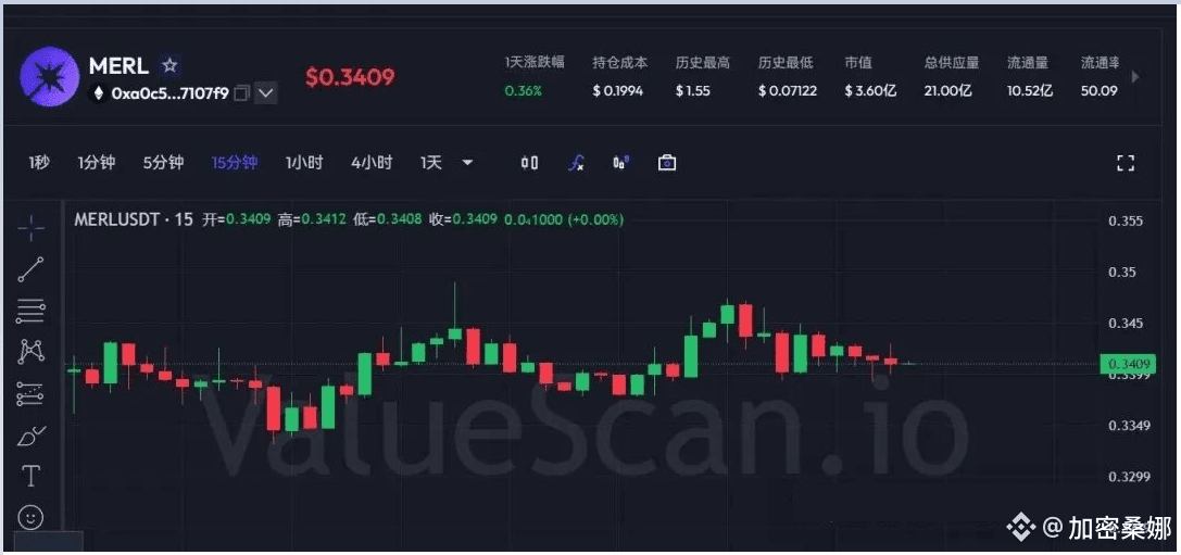 MERL 这一个月三次冲 0.5 都被按下来,高点一次比一次低,反弹越来越弱,典型的空头主导下降通道。