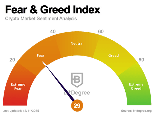 加密恐惧与贪婪指数徘徊在“恐惧”区域(约29),在经历了波动的一个月后,向投资者发出谨慎信号。这是一次暂时的下跌,还是更深幅回调的开始?让我们深入探讨当前市场状态、关键趋势以及未来可能的走向。