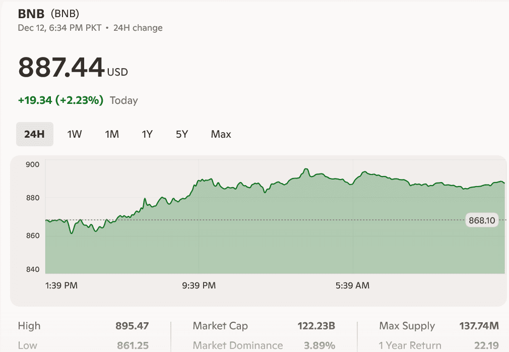 ETH3,157.16+2.32%BNB: 上涨至 $887,增长 2.23%。