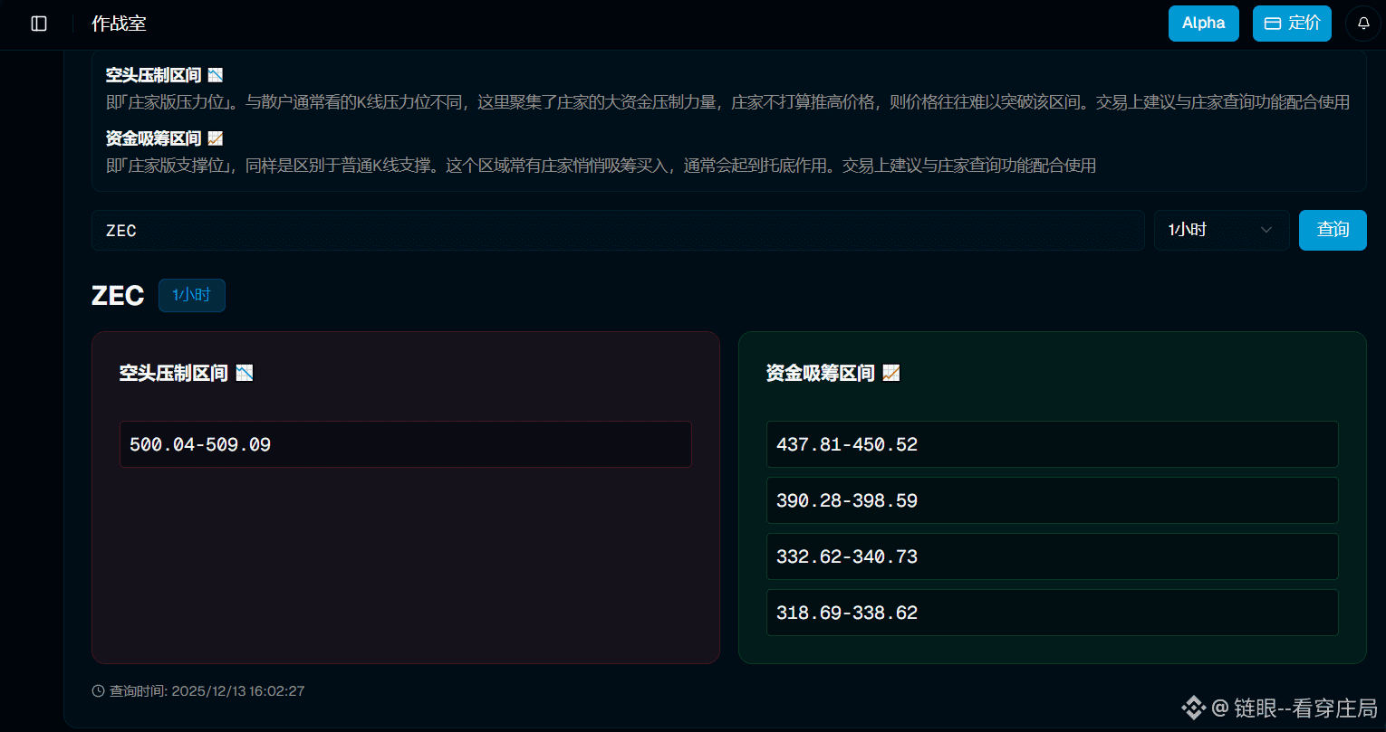 这个工具直接告诉你大资金没进来、支撑阻力在哪,能帮你避开盲目亏损。想ZEC交易更稳,情报局+作战室超实用,理性操作胜率高!