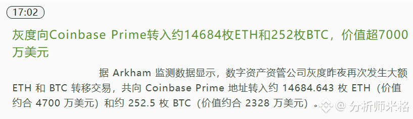 就在昨晚,灰度往Coinbase Prime转了接近1.5万枚ETH,价值4700万美金。这是啥信号?机构可能在准备砸盘,或者至少是在调仓。