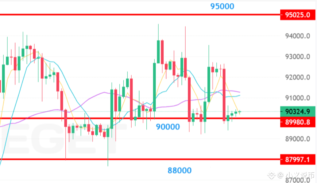 下方核心支撑:88,000–90,000 美元90,000 美元整数位本周两次被快速拉回,买盘防守意愿明显。若失守,回调目标或指向 85,000 美元区域。