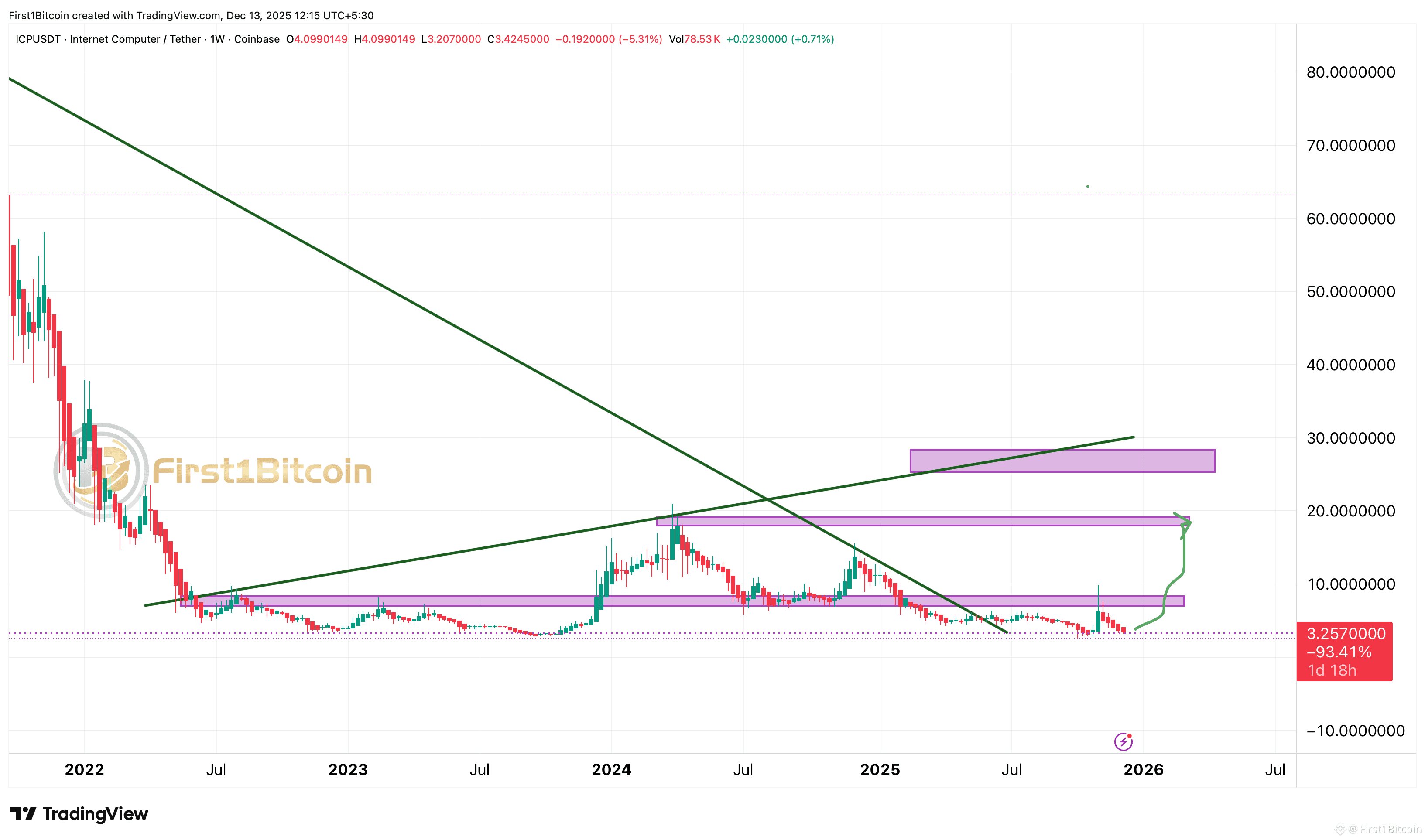互联网计算机 (ICP) 可能终于显示出期待已久的宏观趋势转变的迹象。在经过一段时间的基础建设后,ICP 现在已经重新夺回了其长期支撑区,这一水平之前曾作为主要的突破区域。这个重新夺回通常被视为高时间框架上趋势反转的早期信号。
