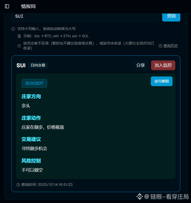 这个工具直接告诉你主力在推多、吸筹已就位,抓准机会吃肉。SUI短期看涨,用情报局+作战室,操作更有底气!
