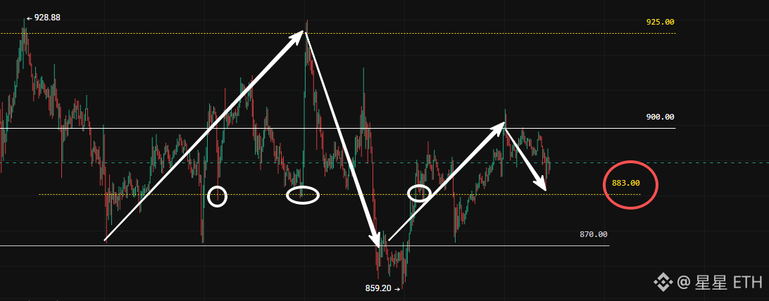 12月11的分析,bnb的多空也都给到了,也都都是很不错的位置,广场上也发了这些单子。目前的盘面,感觉 bnb它在搞事情,虽然它依旧在小区间【870-900】内震荡,但你会明显的感觉到空不下去。883附近的承接,莫名其妙的有点强。