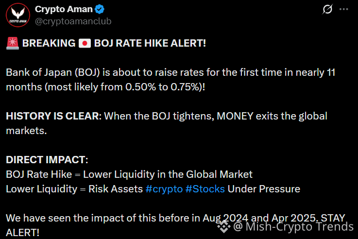 Catalysts: The expected BOJ rate hike is the main driver, a move that has historically led to 20-30% BTC price drops due to the unwinding of the "Yen carry trade".