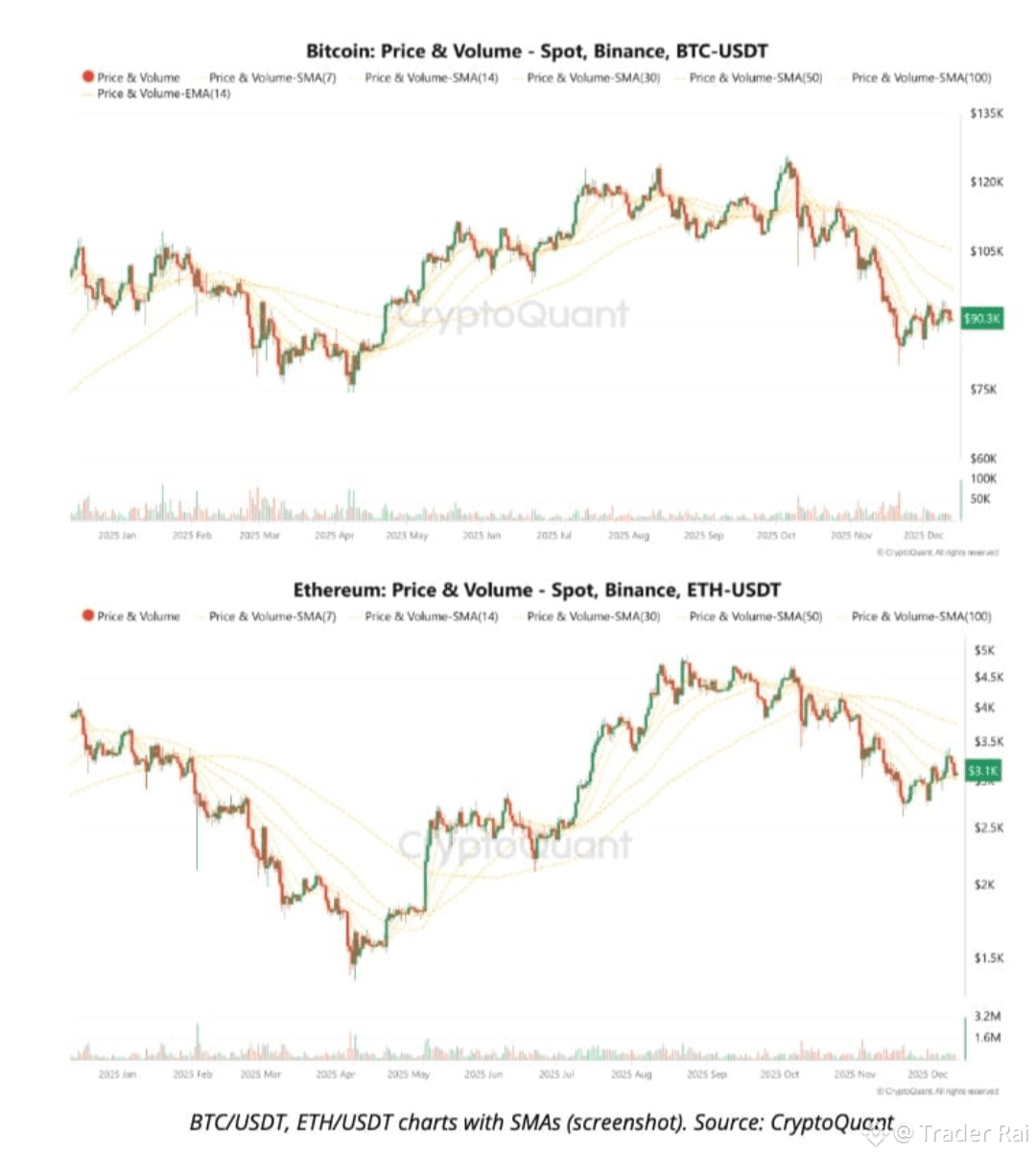 On-chain data is adding another layer of caution. Analysts at CryptoQuant have pointed out that Bitcoin is displaying characteristics consistent with a broader bear-market phase. Simple moving averages are sloping downward and acting as dynamic resistance, while relief rallies are occurring on weak volume. At the same time, selling pressure has been more aggressive during downside moves, suggesting that larger participants may still be distributing risk.