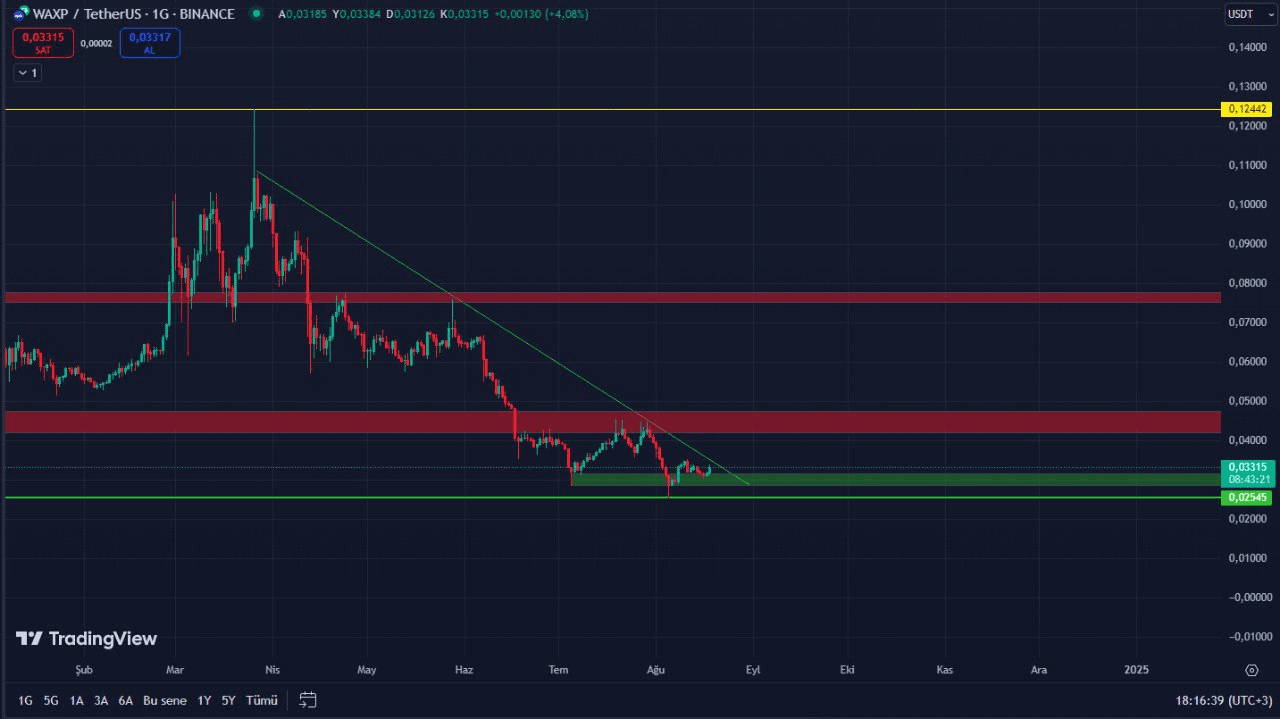 WAXP 從 0.03170 支撐位反彈,但由於整體看跌市場結構,0.027 區域再次受到測試。不過,在大幅下跌之後,價格在 0.02545 水平找到支撐並再次開始上行。除非本週突破 0.04253 區域,否則價格將繼續表現出累積行爲。