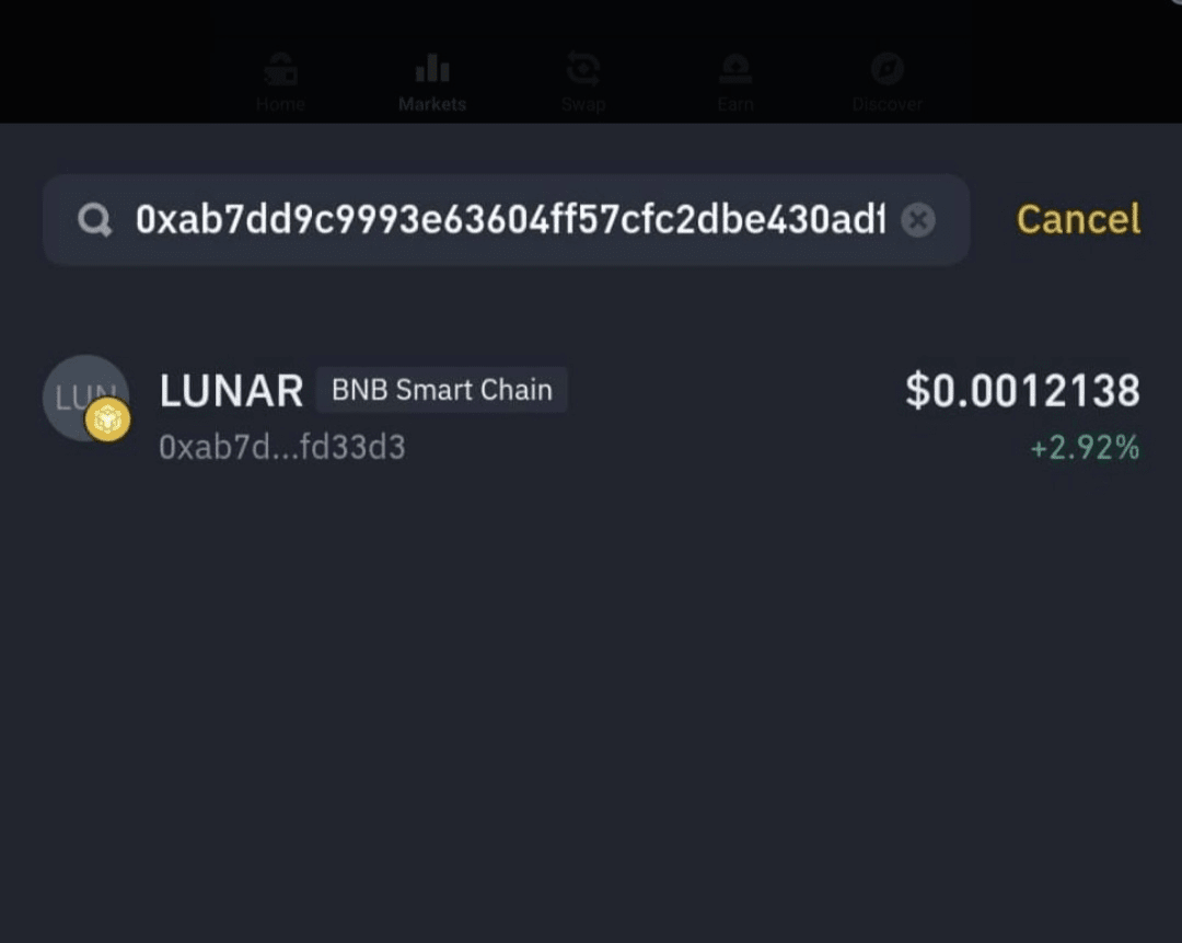 6️⃣ 在您的錢包中查看$LUNAR代幣