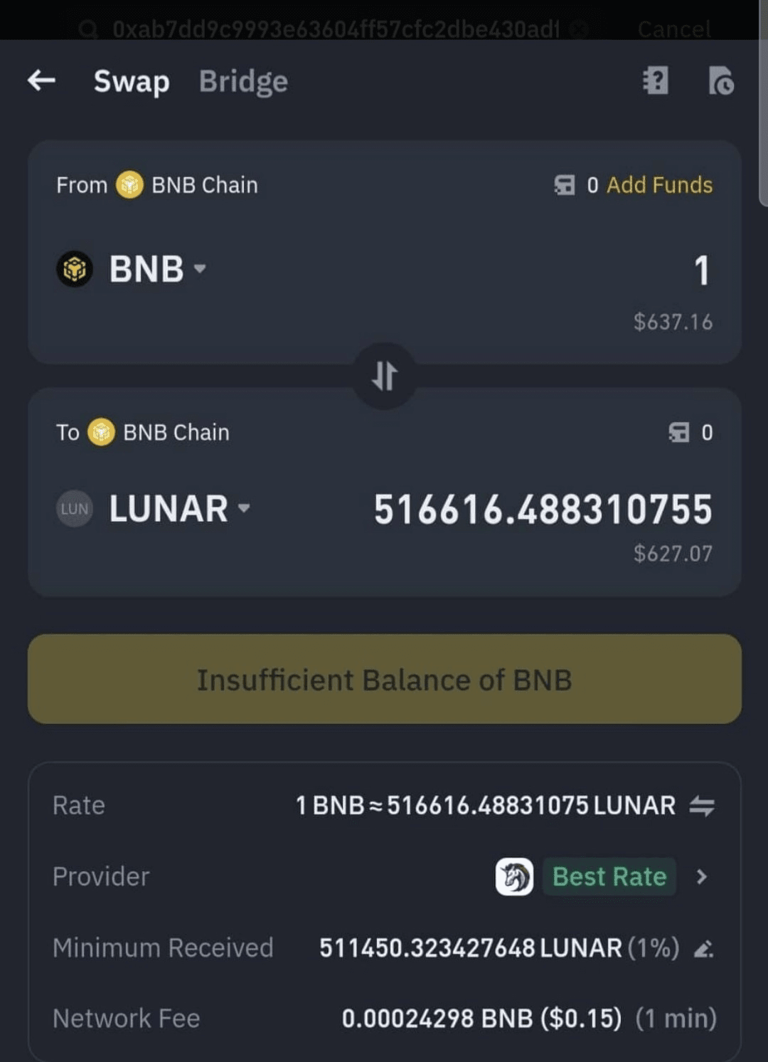 3️⃣ 輸入您希望兌換爲$LUNAR的BNB數量。