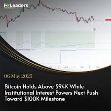 截至2025年5月6日,比特幣(BTC)交易價格約爲94,000美元,反映出過去24小時內約0.44%的小幅下跌。儘管出現這一小幅回調,但由於強勁的機構興趣和市場動態,加密貨幣仍保持強勢地位。