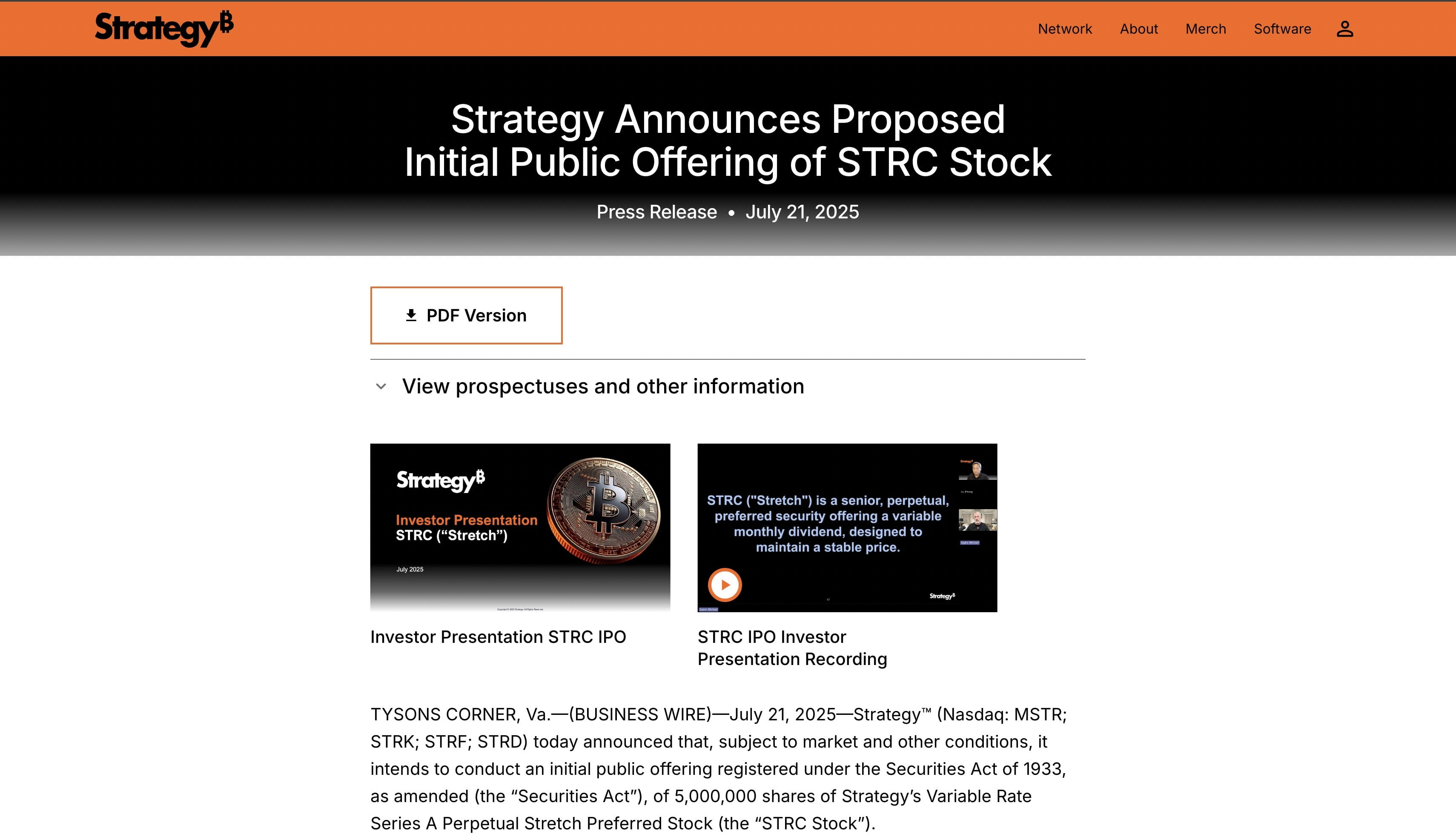 ✧ MicroStrategy正在推出STRC - 一種新的合成資產