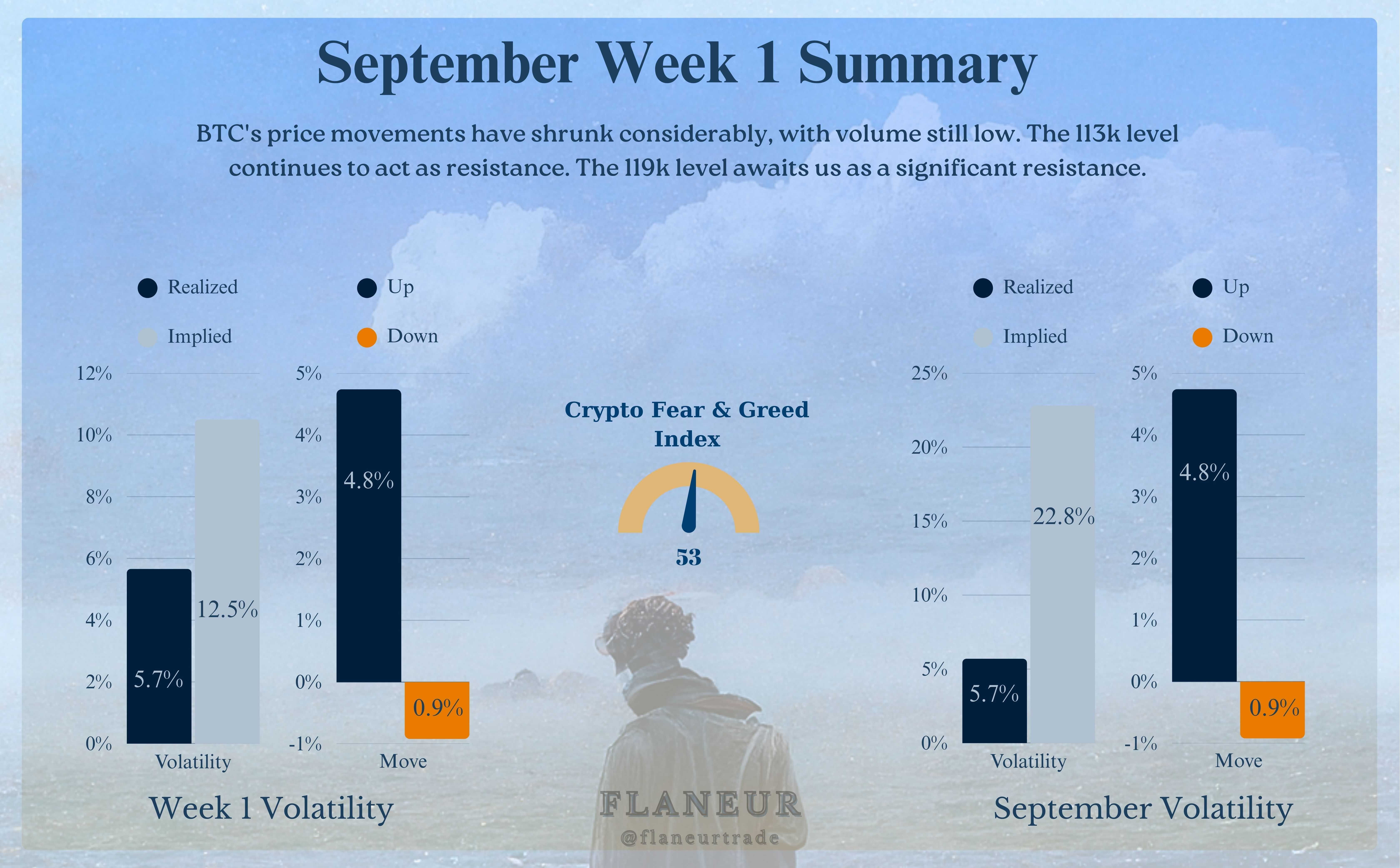 九月的第二週有望成爲定向設置周。BTC正在挑戰$113,000的堡壘,但極高的每週看跌/看漲比率顯示出這一堡壘受到了多麼強烈的防守。ETH在未突破自身關鍵阻力的情況下,正在努力伴隨BTC。