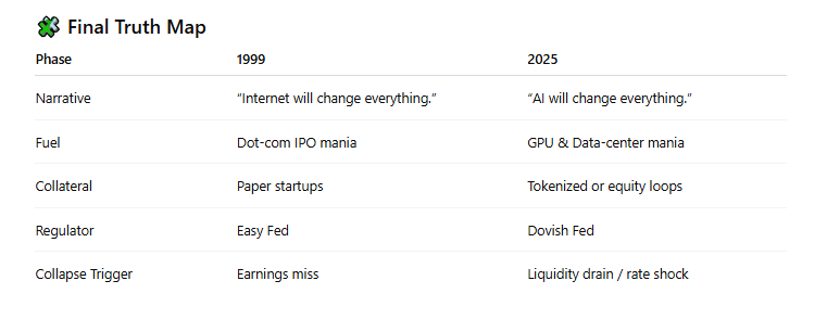 沒有交付芯片。沒有建立基礎設施。但財富在膨脹。這意味着我們正在見證金融遞歸——一個依賴信念循環而非現金流的市場。