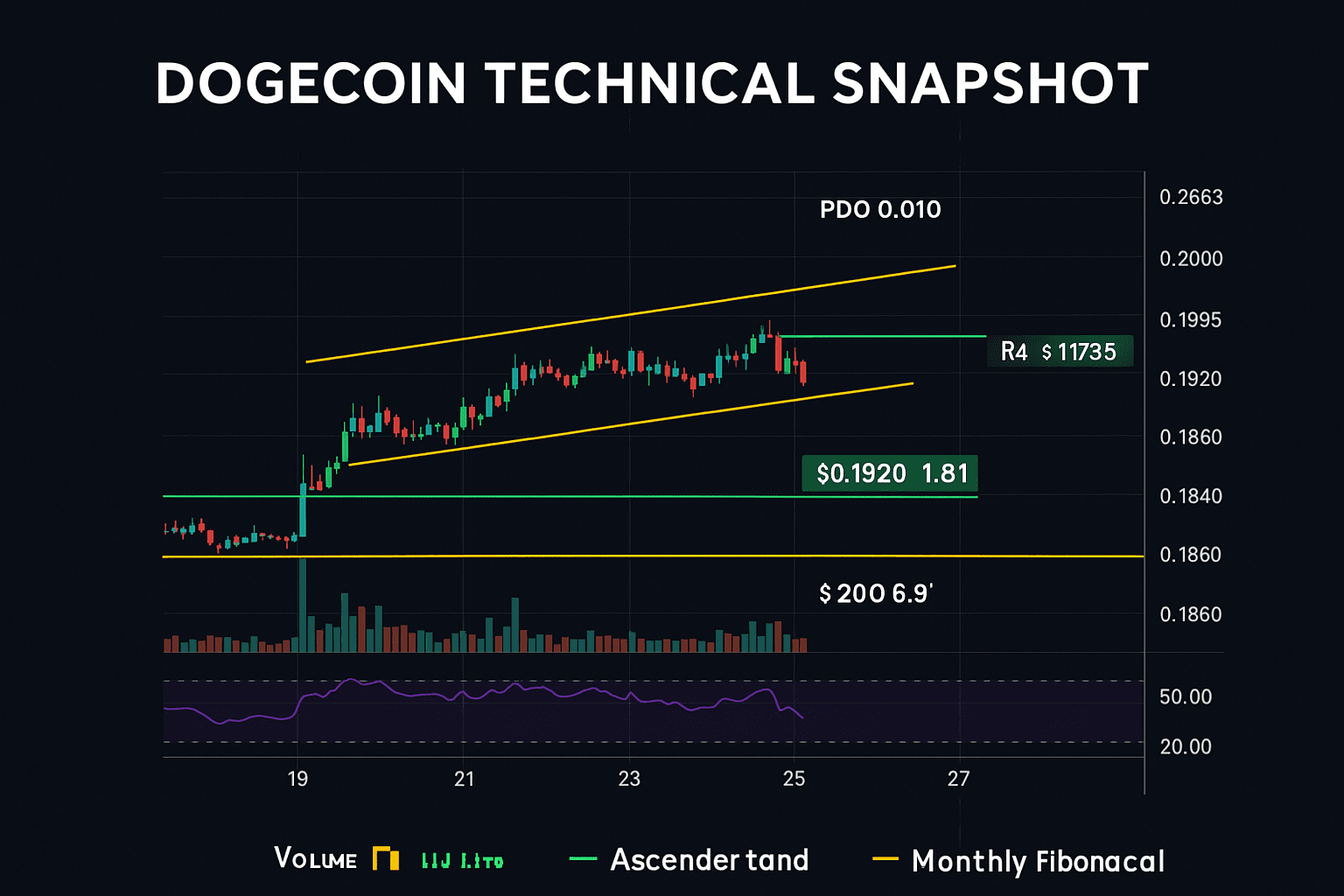 狗狗幣在$0.1860和$0.1953之間的窄幅$0.0132區間內交易,保持在關鍵的$0.19心理支撐附近的穩定。