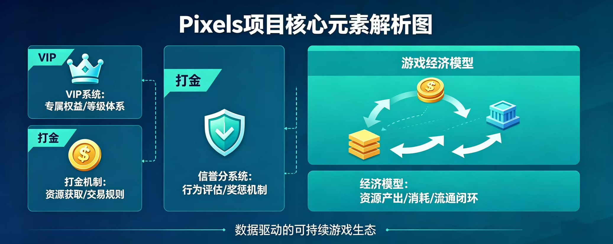 现在Pixels最缺的不是更多VIP功能,而是一个能让“花钱买开心”跑赢“花钱买回本”的消耗场景。买装修、加速冷却这些销毁路径太弱了——越想省钱的玩家,销毁越少,这不就死循环了吗。我现在的盯盘信号就两个:一是Chapters 3之后有没有出现那种“纯粹为了炫耀”的大宗资源消耗,二是Ronin生态能不能拉来真正的新钱,而不是老钱在里头反复倒手。