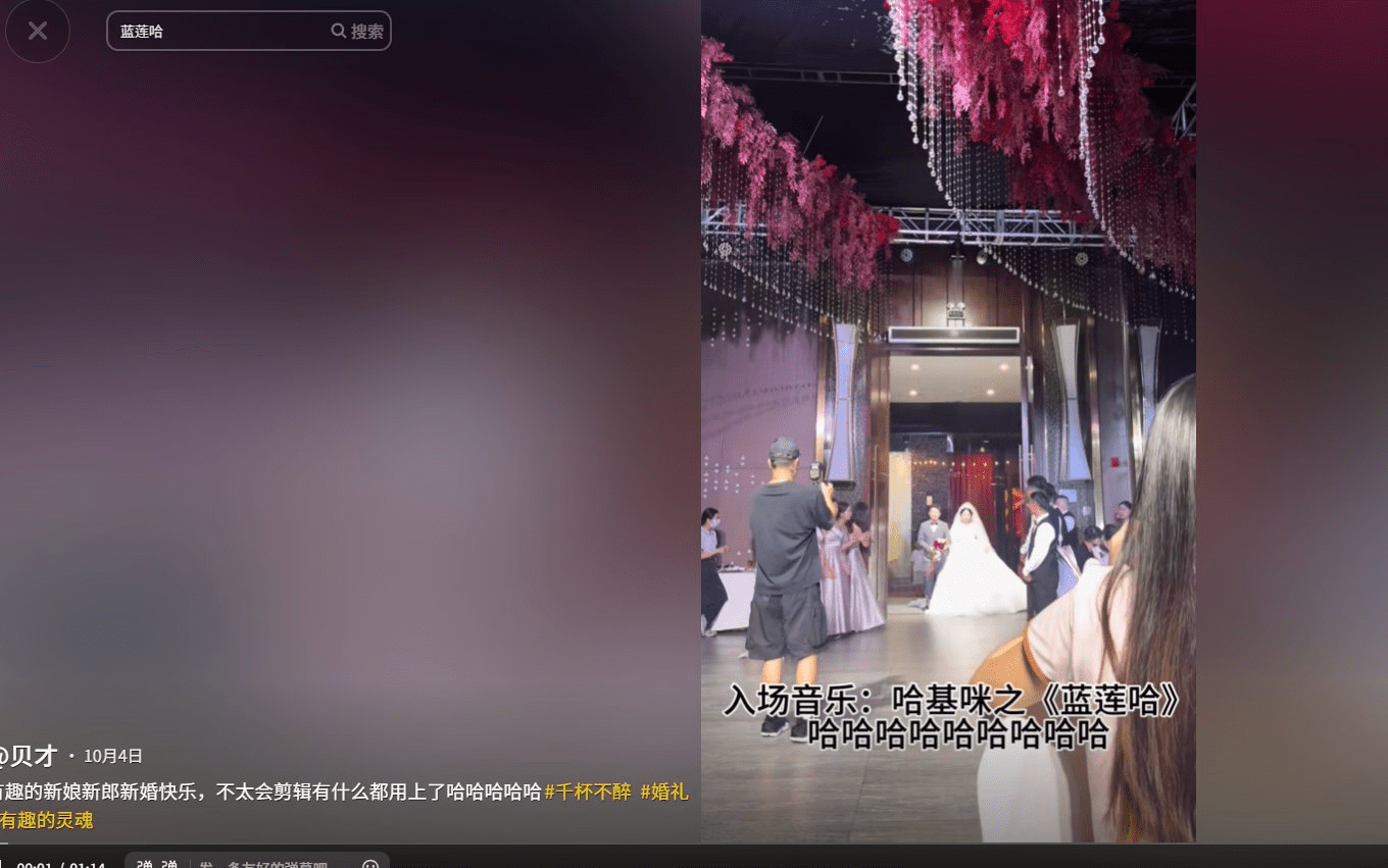 瞬間四:結婚現場使用了(藍蓮哈)作爲入場背景音樂,歡快調皮的氛圍伴隨着親朋好友的祝福,陪伴着新人走向神聖的殿堂。
