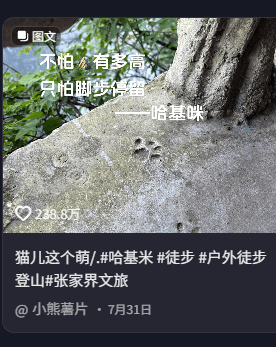 若干天若干年之後,一位登山的遊客在此休息,無意中瞥見那一隻貓爪,許是命運的註定,在衆多遊客之中,他和它此刻邂逅。
