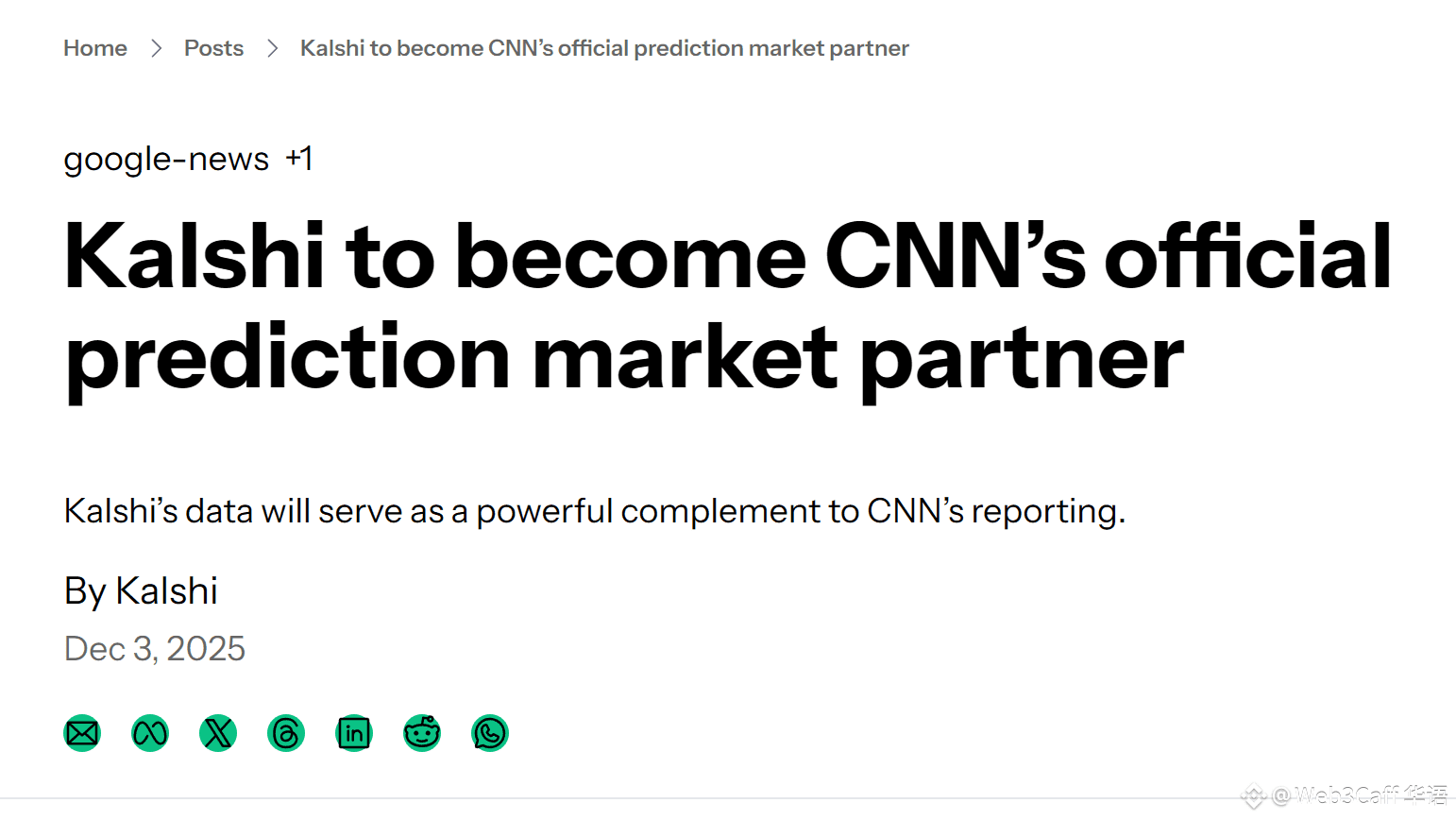 Kalshi 成 CNN 官方预测市场合作伙伴