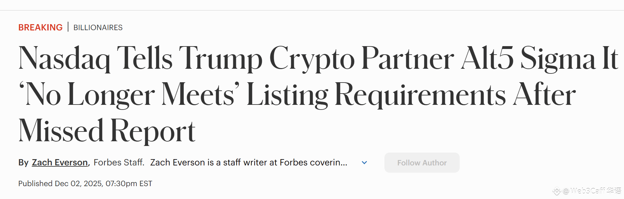 纳斯达克将与特朗普家族有合作关系的 Alt5 Sigma 列为不合规公司