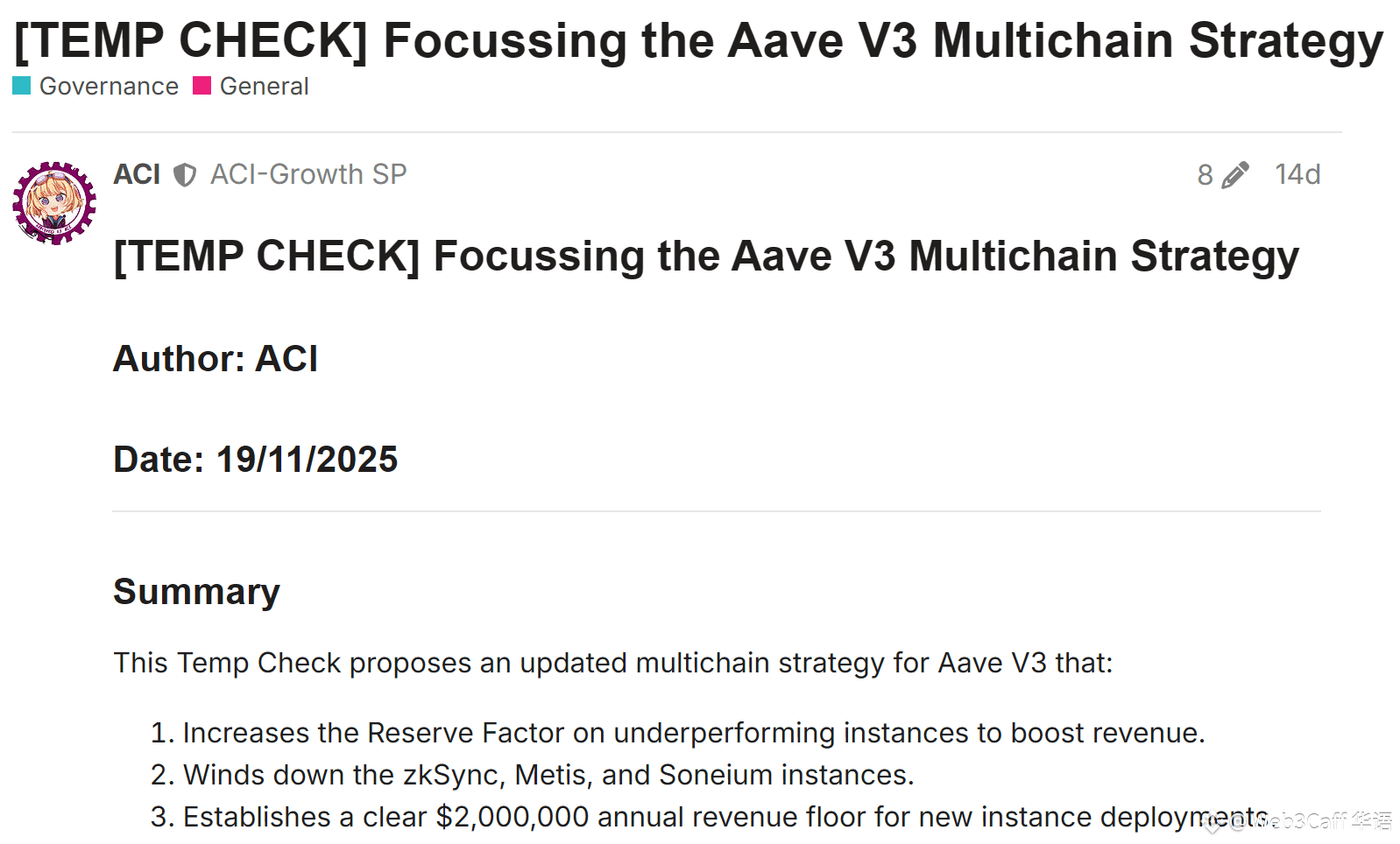 Aave 讨论关闭在 zkSync、Metis、Soneium 的部署