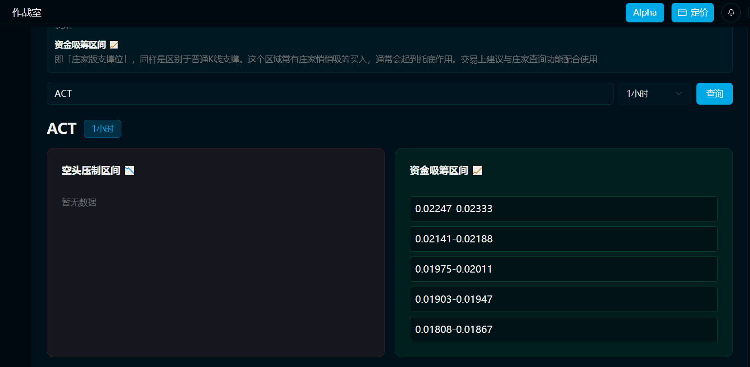 作戰室數據:空頭壓制區間 “暫無數據”(上方無明確阻力限制漲幅),資金吸籌區間最高 0.02333(當前價格較吸籌區溢價 7.2%,主力已脫離成本區)—— 意味着後續上漲空間較充足。