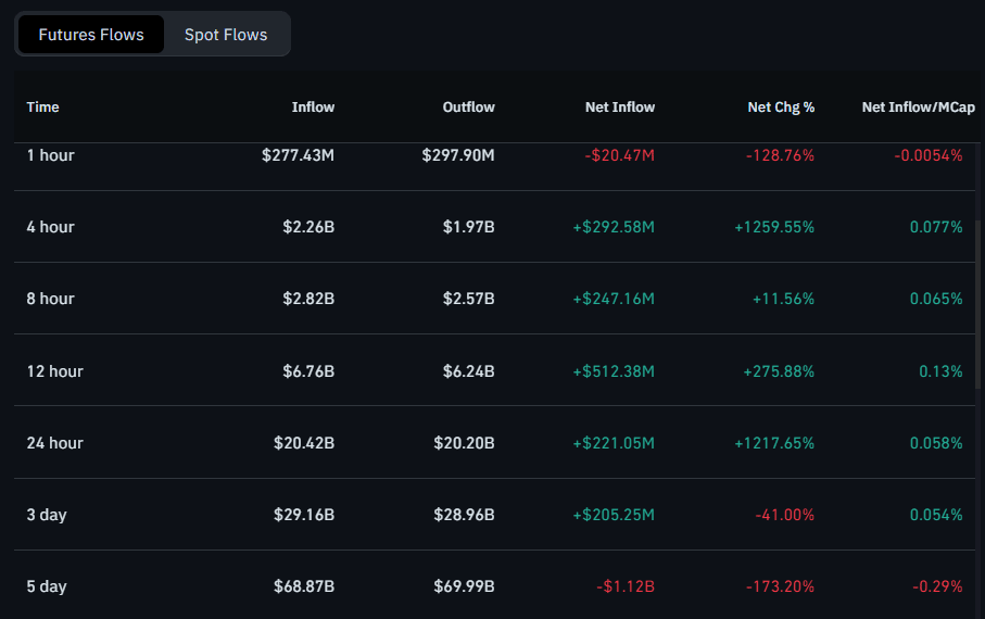 在其他地方,以太坊的12小時流動性數據顯示淨流入爲 $512.38M,流入爲 $6.76B,流出爲 $6.24B,變化幅度爲 +275.88%。這次流入激增表明在12小時內存在強勁的買入壓力。