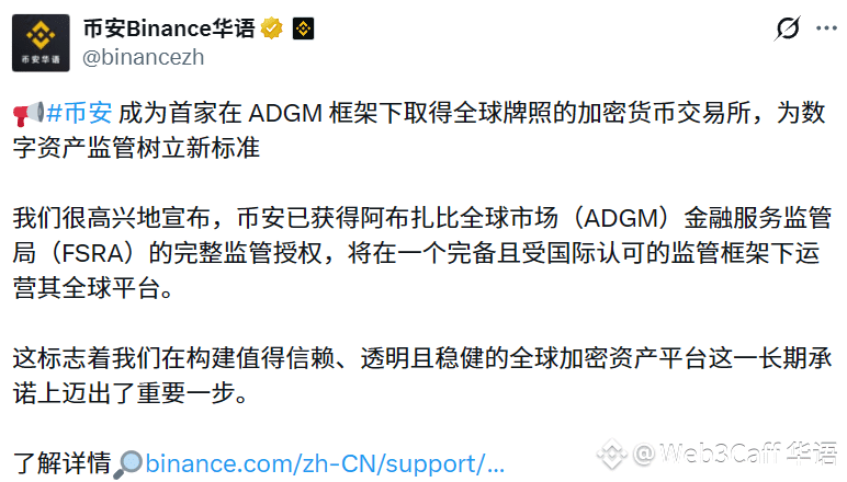币安已获阿布扎比全球市场金融服务监管局完整监管授权