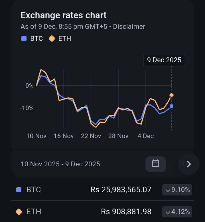 同樣,以太坊($ETH )的當前價格約爲3,122美元(約9.09 lakh PKR)。整體加密貨幣市場今早小幅上升,儘管在恐懼與貪婪指數上仍然處於"恐懼"區域,這表明投資者仍然保持謹慎。