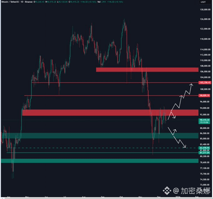 BTC:92000-94000 美元是关键阻力,能收复才能反弹,不然可能再跌到 88000 美元;