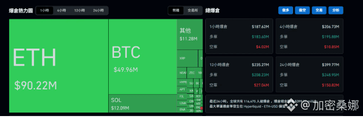 ETH 也跟着躺枪,短线跌了 200 美元左右,撰稿时勉强守在 3000 美元以上,稍微有点回升。更狠的是爆仓数据 ——Coinglass 显示,就 1 小时内,全网爆仓 1.87 亿美元,其中多头直接被按在地上摩擦,清算金额高达 1.83 亿美元,惨不忍睹!