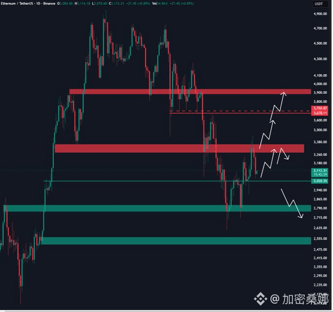 ETH:阻力在 3200-3400 美元,冲不破的话,3000 美元关口可能守不住。