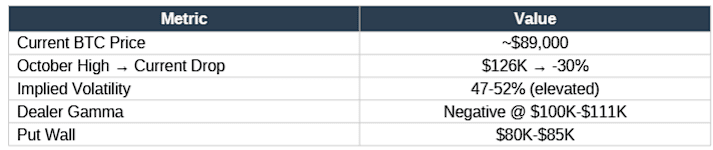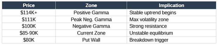 外賣:比特幣處於負伽馬區域($80K-$111K)。