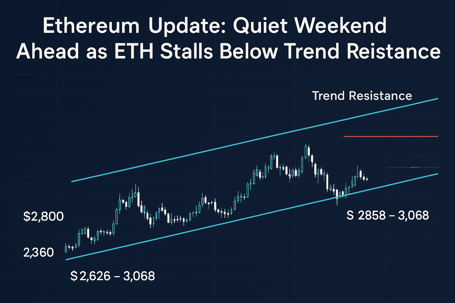 以太坊(ETH)目前在一個非常窄的區間內交易,並且仍然低於其趨勢通道的上邊界。根據當前市場結構和歷史行爲,週末出現重大突破的概率似乎相對較低。