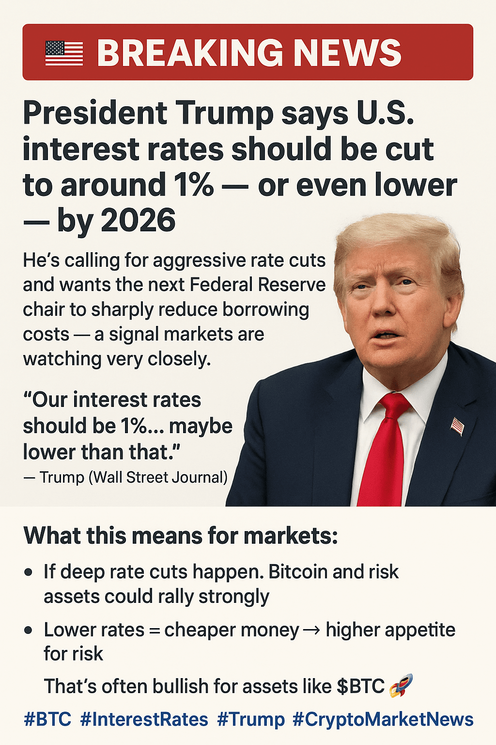 💬 “我們的利率應該是1%……可能更低。特朗普(華爾街日報)