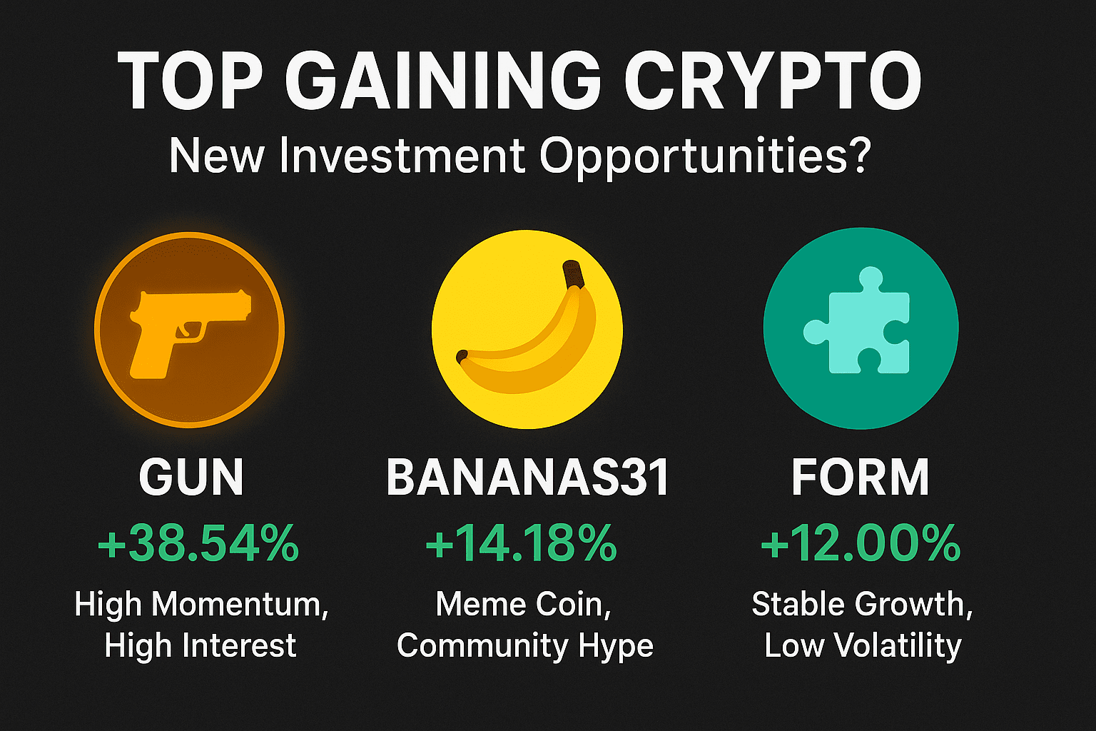 在當前市場動能下,GUN、BANANAS31和FORM各自提供不同類型的投資機會。無論你是追求短期交易還是中期持有,根據你的策略選擇合適的代幣至關重要。