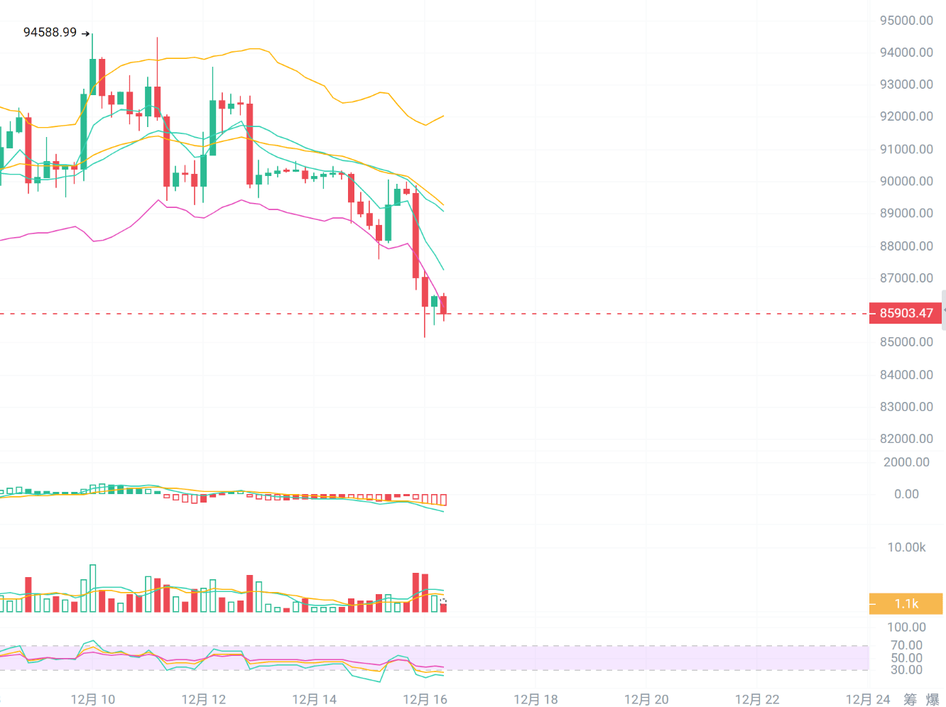 宏觀上,上週五兩個美聯儲高管反對降息,昨晚又有多個高管發言,意見分歧大。米蘭反對降25個基點且支持激進降息,威廉姆斯稱貨幣政策良好,柯林斯表示支持降息決定艱難。上週降息25個基點後,美聯儲高層政策分歧公開化。市場恐慌,美股盤中拋售大跌,加密貨幣市場也聯動下跌,跌幅加劇。