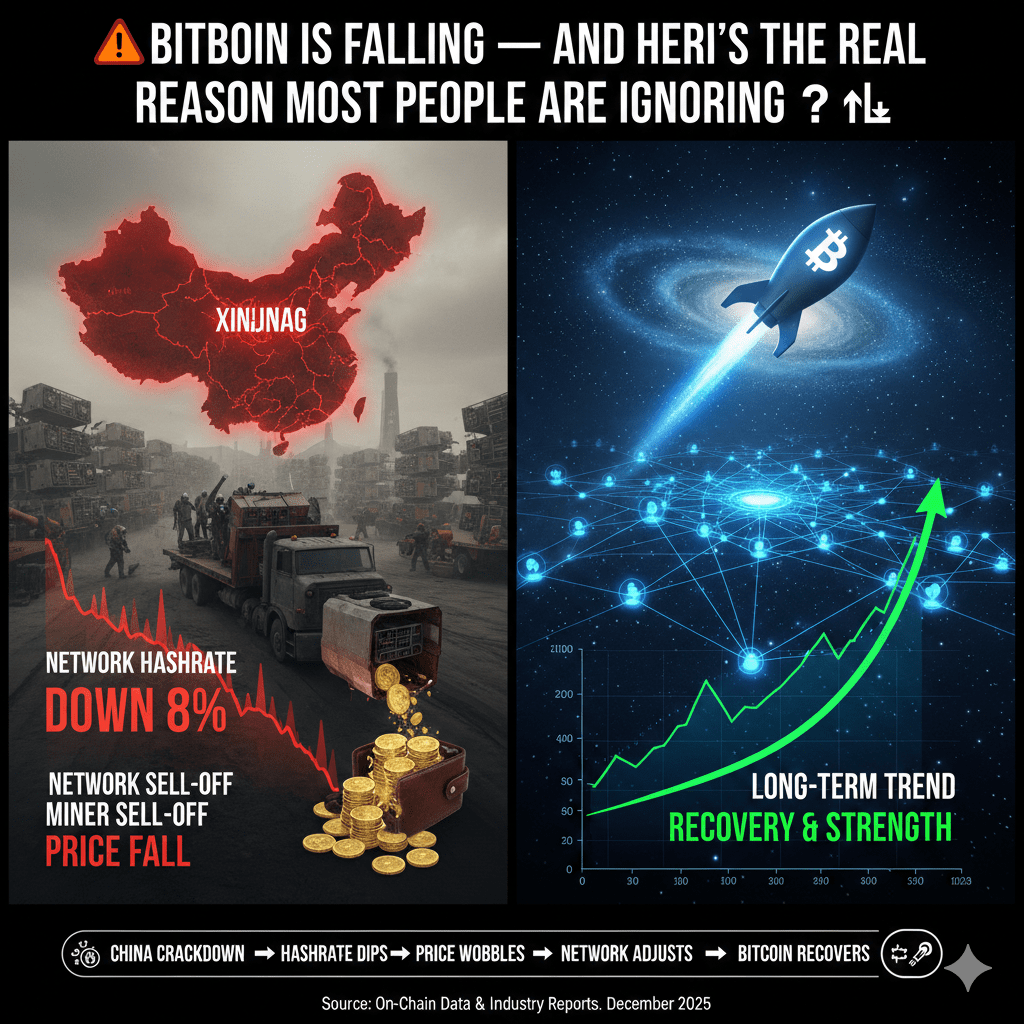 🎬 中國打壓 ➜ 哈希率下降 ➜ 價格不穩 ➜ 網絡調整 ➜ 比特幣恢復 🚀