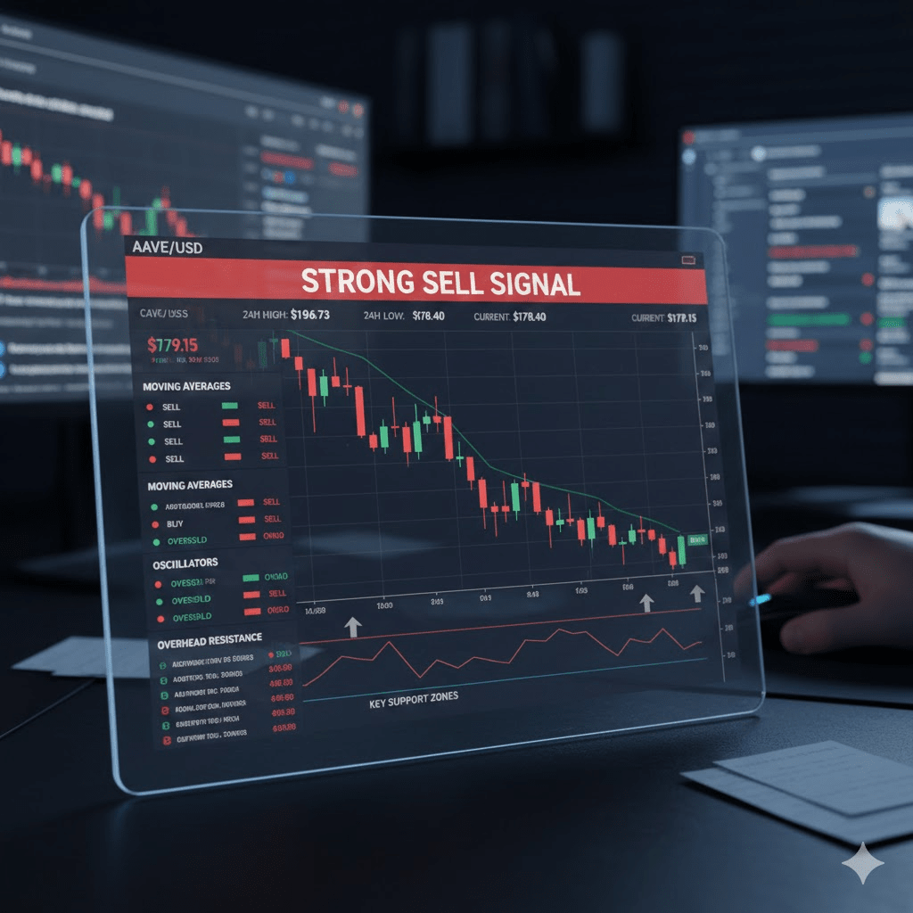 AAVE在其24小時交易窗口中經歷了顯著下跌,從大約$196.73的高點下滑至約$178.40的低點。目前,技術指標顯示大多數移動平均線發出"強烈賣出"信號,以及每日和每週分析的更廣泛的"賣出"評級。儘管一些短期振盪器顯示出"超賣"狀態或"買入"行動,暗示可能會有短期反彈,但整體情緒仍然是看跌壓力和謹慎。交易者被建議密切關注關鍵支撐區,以尋找潛在的反轉點,因爲價格目前正在與上方阻力搏鬥。