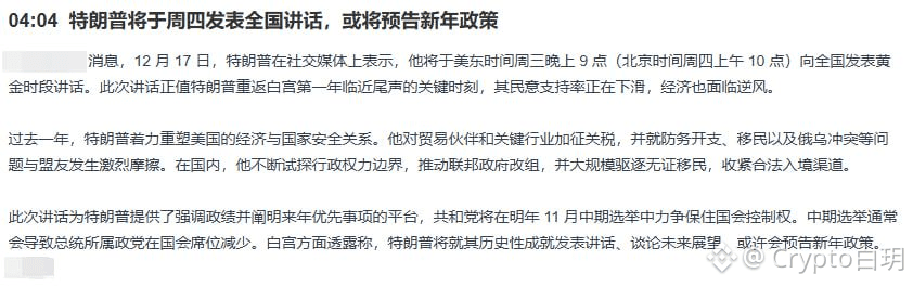 他过去一年干了啥?加关税、跟盟友吵架、在国内搞大动作。这次讲话,他肯定要使劲夸自己,顺便画一画明年政策的大饼。这关系到美元政策、全球贸易情绪,你说跟咱们币圈有没有关系?关系大了!这种级别的大佬讲话,很容易搅动全球资金的神经,要么避险,要么寻求新机会。任何关于经济政策的意外表态,都可能成为市场短期波动的“催化剂”。