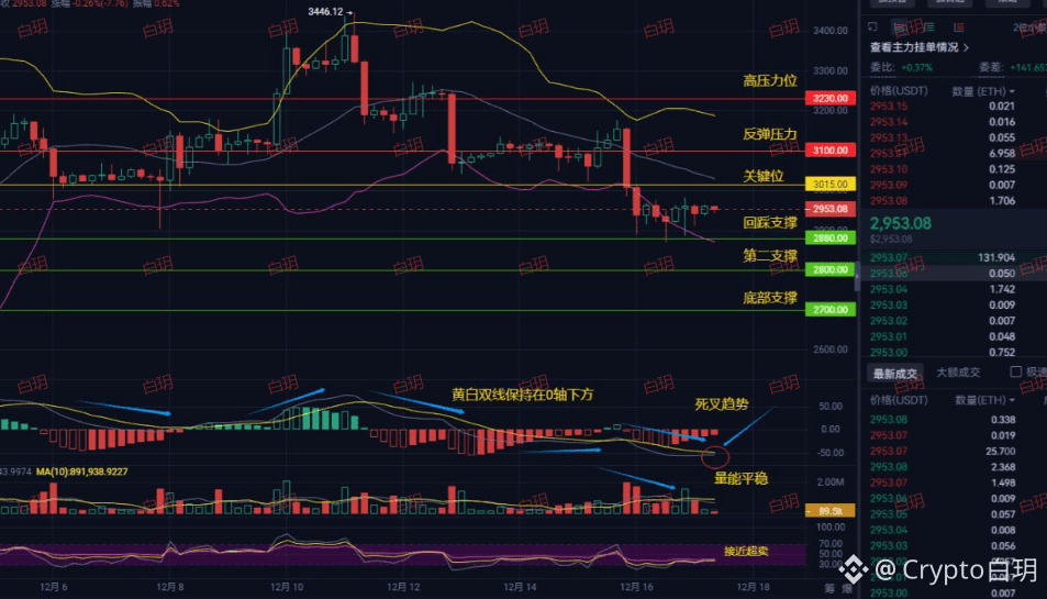 再看咱们的ETH,目前价格在2953美元附近晃悠。看图说话: