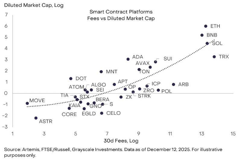 機構投資者加大配置將促使市場更關注區塊鏈及協議的“基本面”,其中可持續的手續費收入成爲核心衡量指標。
