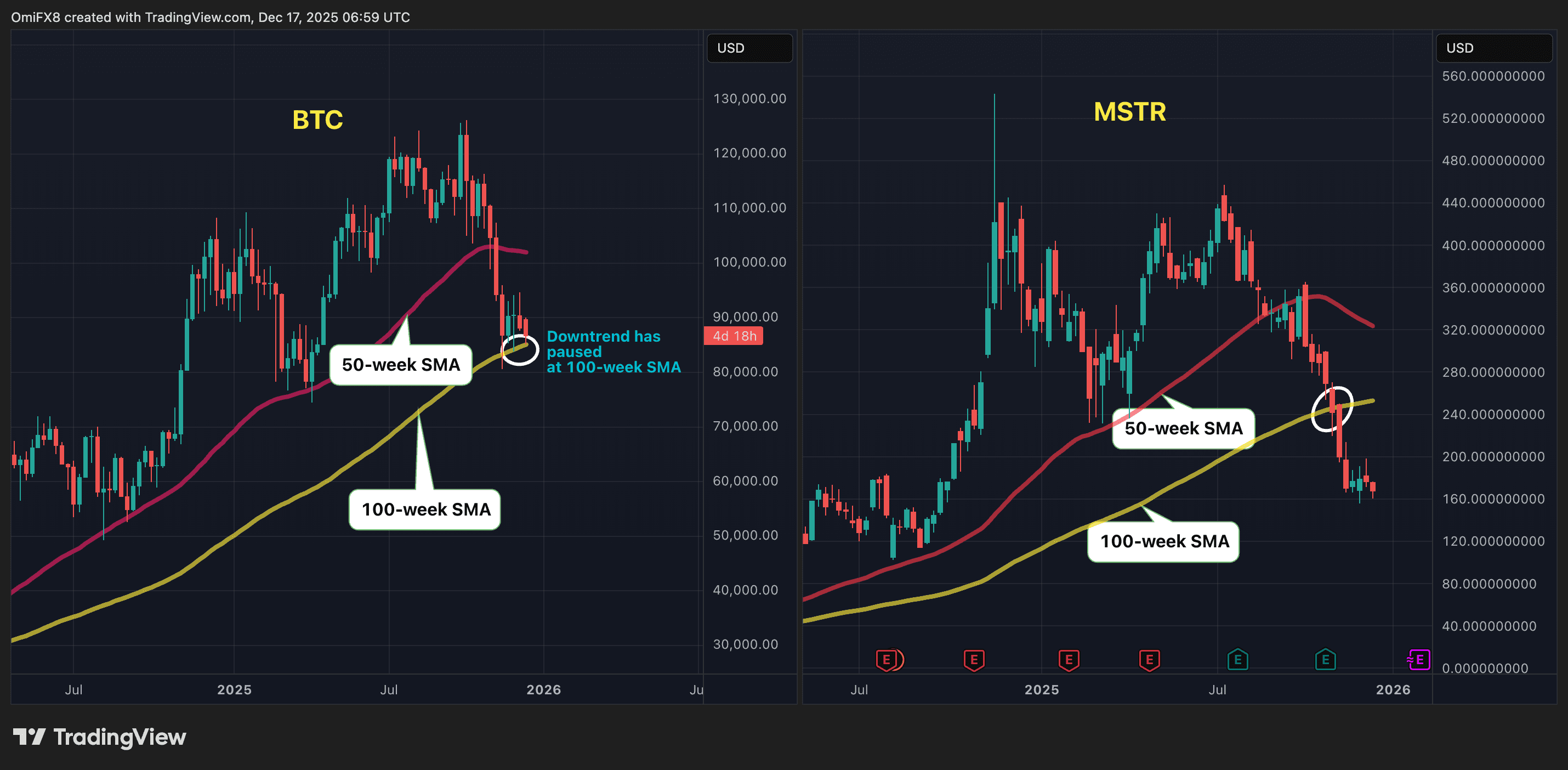BTC交易接近關鍵支撐,MSTR提供看跌線索。