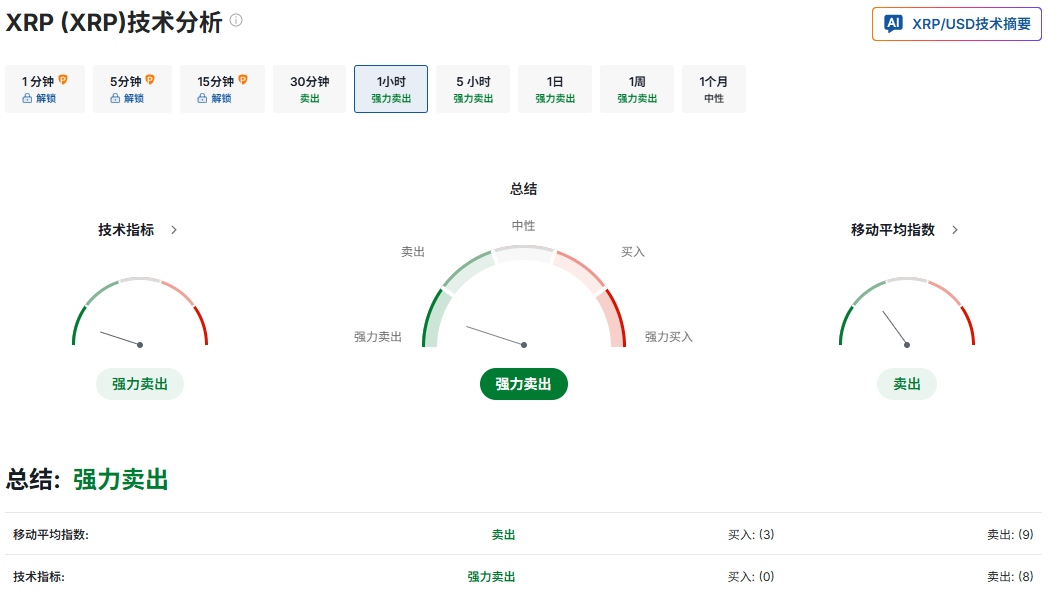 趨勢全面看空:1小時、5小時、日線、周線全是“強力賣出”,移動平均線9個賣出對3個買入,技術指標8個賣出對0買入——這是空頭的絕對統治區。