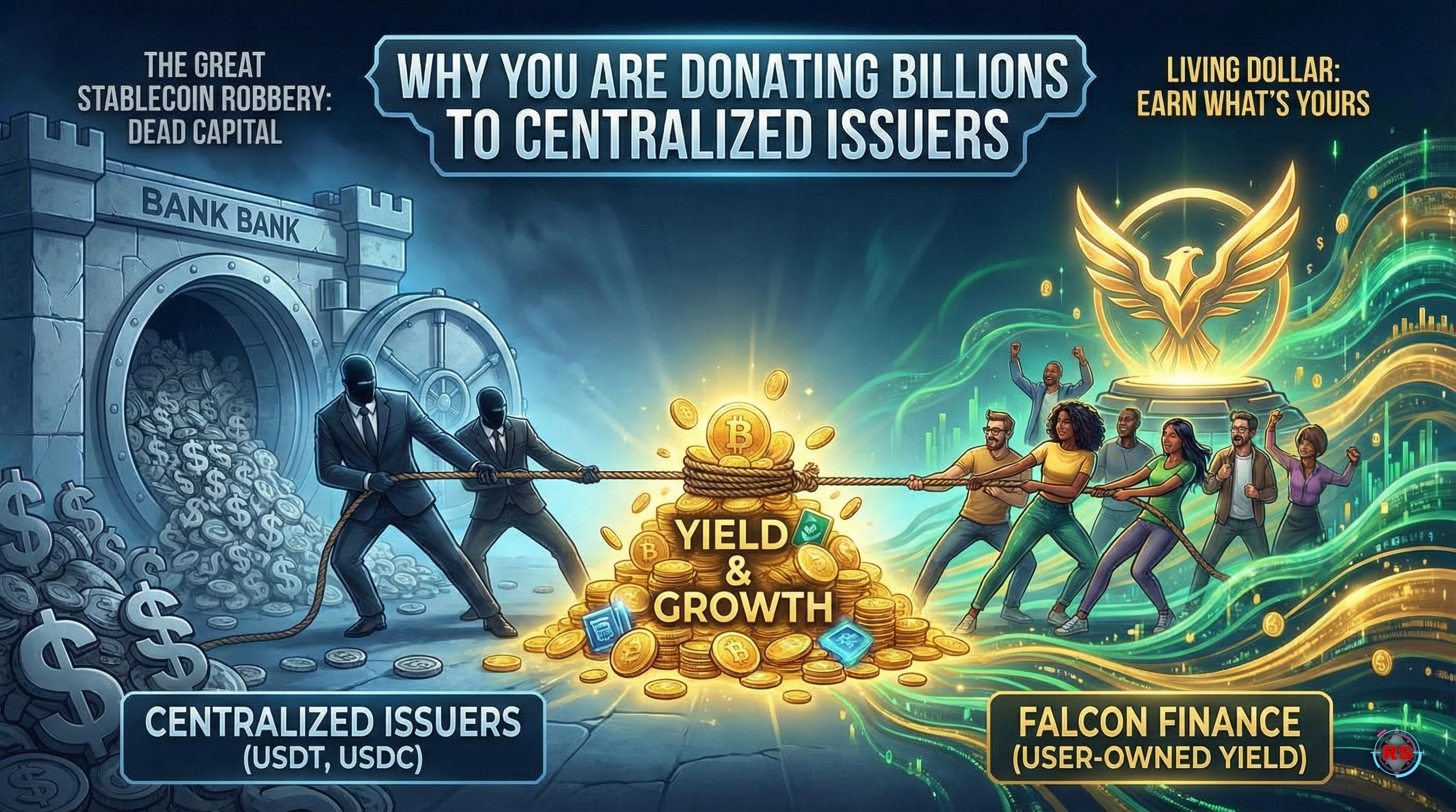 Falcon採用相同的“安全”資產國債、黃金、高級公司信用,但不是囤積利息,而是將其直接回饋給質押者。它把你的“乾粉”轉變爲一種生產性資產。